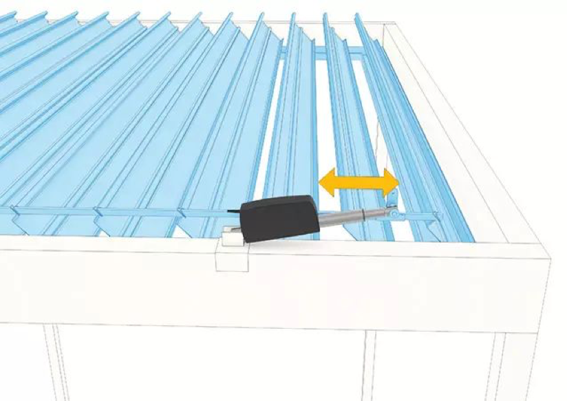 ⊙自動化屋頂系統提供一鍵式解決方案,可方便地在戶外涼棚上開閉百葉窗。
