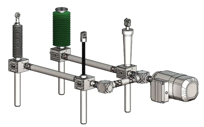 THOMSON自成立75年以來,致力于提供成套的機械設備的解決方案,我們給客戶帶來的價值不僅僅限于只賣一個產品,我們還能為客戶提供成套的技術解決方案,此次AGV的四個蝸輪絲桿升降機的同步舉升,我們通過一個聯軸器,一個電機這樣的技術方案讓四個絲杠升降機實現同步運動。