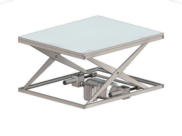 Figure 3. The two screw jacks on this scissor lift can work with a single motor. If the duty cycle were less than 25 percent, they could operate with a machine screw jack, which might counter the otherwise higher energy consumption. (Image courtesy of Thomson Industries.)