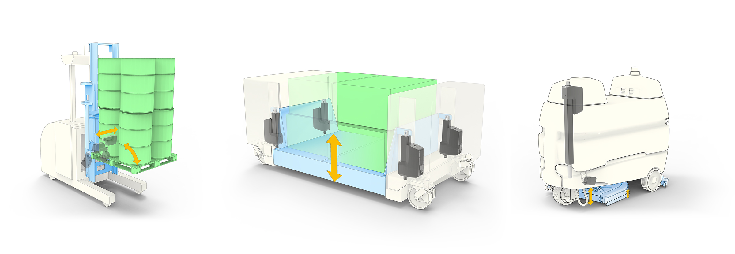 Electric actuators can also expand the controllable working radius, carrying materials toward or away from processing. They might support motion on forklifts, automated guided vehicles (AGVs), telescopic lifting units or overhead conveyors.