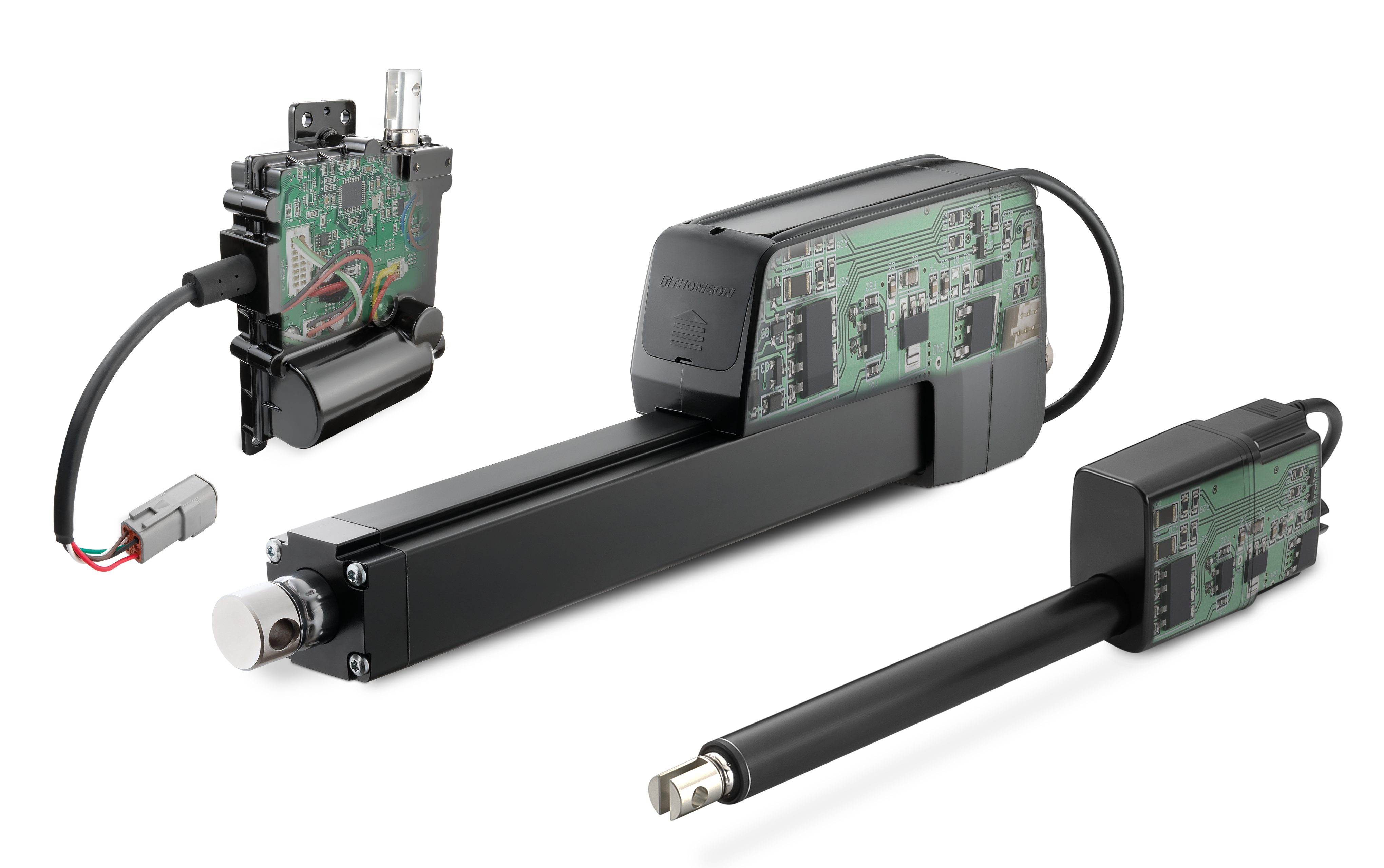 Figure 2. The integration of onboard electronics into electric actuators enables enhanced control functions that were previously external, such as switching, position feedback and system diagnostics, directly into the actuator. Thomson smart actuators incorporate microprocessor-based printed circuit boards with complementary software that allows communication between remote networks. Image courtesy of Thomson Industries, Inc.