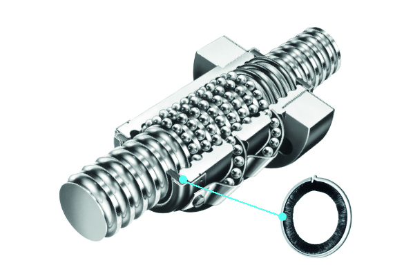防止外部碎屑進入滾珠螺母對于確保其平穩運行和長使用壽命非常重要。大多數尺寸的滾珠螺母都可使用刮刷器。一些刮刷器被集成到螺母中,而另外一些則通過外部夾具固定在法蘭上。產品目錄中給出了每種螺母可用的刮刷器選項。