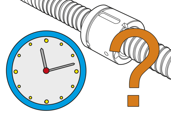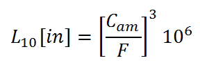 使用壽命通常使用90%的置信度(L10標準),即90%的組件仍然正常運行的時間。動態額定載荷可用于計算絲杠系統的L10壽命。對于英制絲杠,L10使用壽命用英寸行程表示,計算公式如下